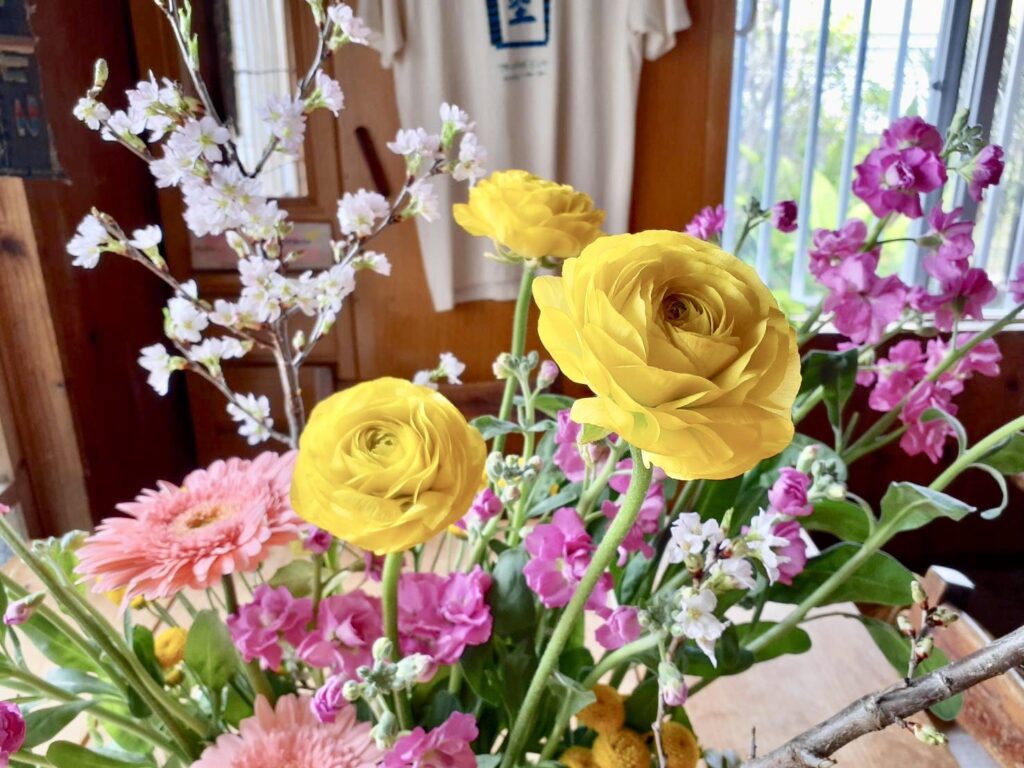 3月はアチコチに卒業式のお花をお届けしております 東海桜メインにしたアレンジメント 蕾の時と満開の時では全然雰囲気が違いますね〜内地の桜も綺麗だわ〜 金城様沢山... -