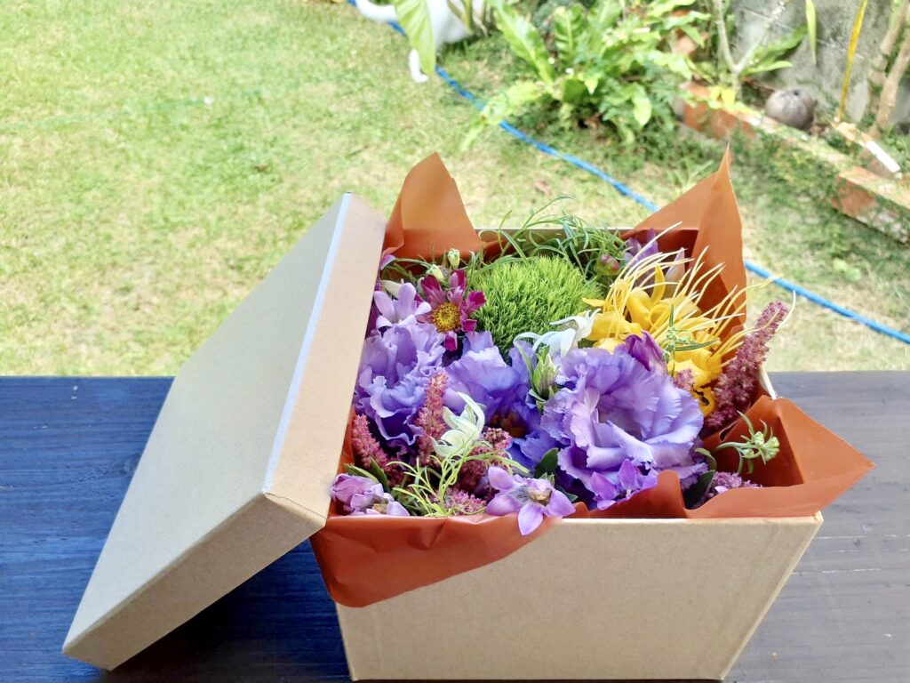 犬さんへお届けしたお悔やみBoxアレンジメント HさんAちゃん長い間お疲れ様でした A様ご注文ありがとうございました 本日は8:45よりお庭ヨガ開催!いつもより15分早い... -