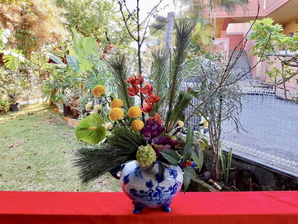 年末年始営業のお知らせ年内休み無し1月1日〜8日休み1月5日初活けお渡しのみ営業1月9日より通常営業 お正月レッスン始まりました 一番ベテランのAさんの作品。器は水盤... -