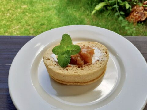 本日のケーキはフクロク亭謹製キャラメルりんごのロールケーキ