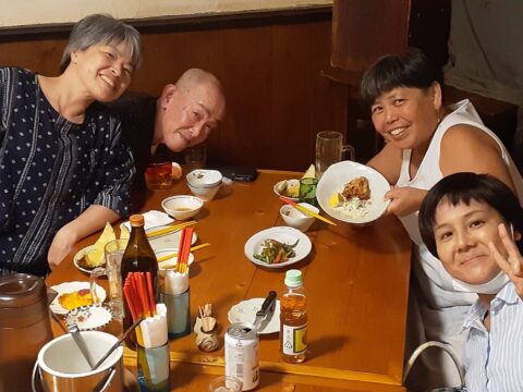 夜はねこの方と夕ご飯。えっしーがご主人と沖縄に遊びに来たのですよ〜。初めましてアキラさん
