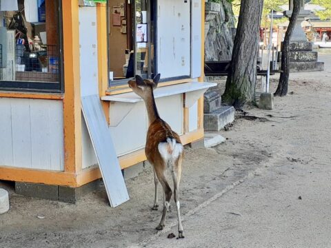 アルバイト中の鹿さん。この子は記念撮影一緒にしてくれるそうよ。小屋の中の写真屋さんになんかちょうだいって窓から言ってて可愛かったわ〜