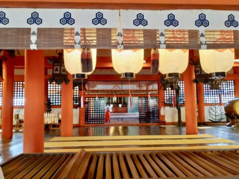 美しい拝殿。宅急便で届いた?献上品を巫女さんがえっさほっさ運んでて可愛かった♡
