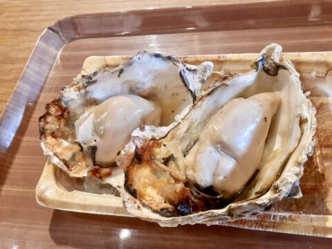 朝早すぎてお店がちょっとしか開いてないんだけど、焼き牡蠣発見!でーじ美味しい2個で¥600安い!広島で食べた牡蠣ここが一番美味しかったわ〜