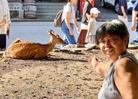 フェリーを降りたら速攻鹿!なんかちょうだいとか全然言わない鹿達。餌付け禁止なんだって。よきよきだね