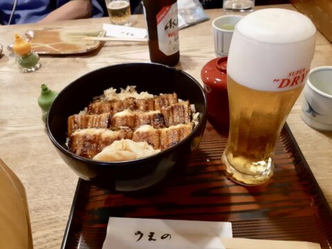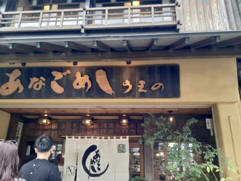 船を降りたら速攻駅前のココオススメの「あなごめしうえの」へ。オープン30分すぎに来たが、すでに60人ぐらい並んでて…お弁当はすぐ買えるがアチコーコーをビールと食べたかったので1時間並びましたわよ