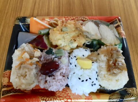 もう今日は帰るのだ。宿近くのイオンで買った朝ごはん。内地風のおかずや、栗ご飯が入ってたのでこれにしたよ