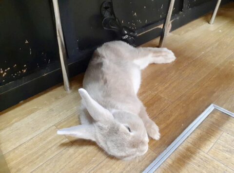 11時の飛行機なので早起きし、看板うさぎラッピーにご挨拶。調子が悪いそうで今日は病院に行く言ってたな頑張れよラッピー