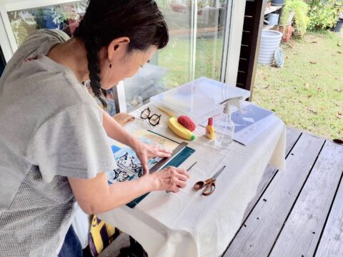 カレンダー展期間中19日ヘッドスパの頭屋みのりさんがやってきます。アートで癒されヘッドスパで体も癒されてくださいね