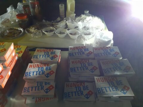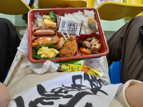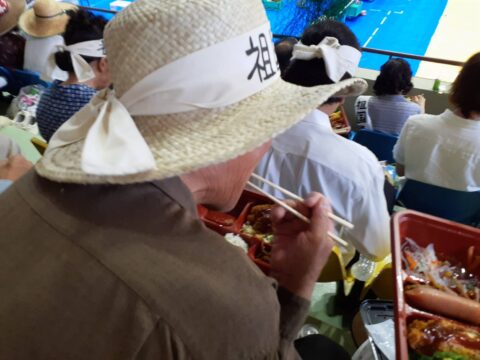 この日は宜野座村体育館に集合で、衣装メークの後はとりあえず美味しい弁当が配られランチ