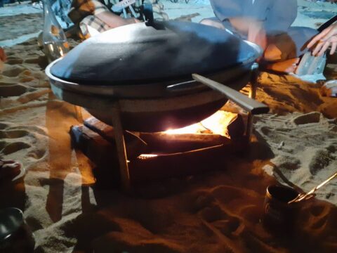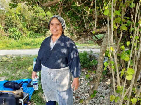うちらの役柄はヒージャー汁を囲んで談笑する老人4人の内の二人のでございます