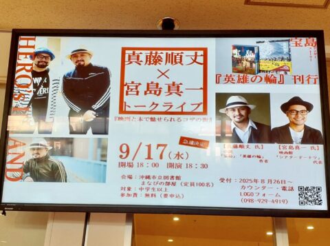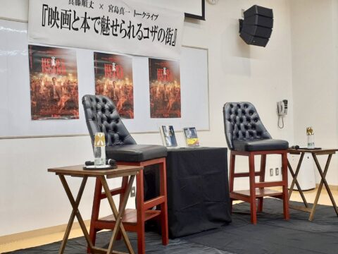 そして1年あまり経った映画公開ちょっと前、シアタードーナッツ宮島さんのインフォメーションで沖縄市の図書館で宝島原作者のトークショーがあると知り即効申込む