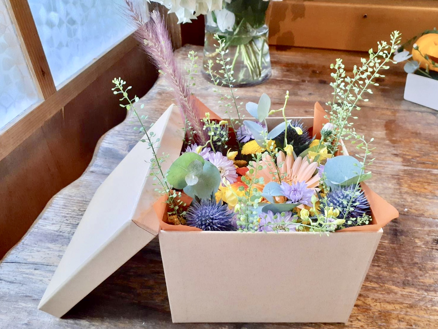 犬さんへお届けしたお悔やみBoxアレンジメント