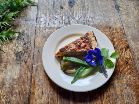 本日のケーキはフクロク亭謹製洋梨のアーモンドケーキ