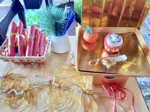 お正月飾りやお花にアレンジする水引や上向きだるマン