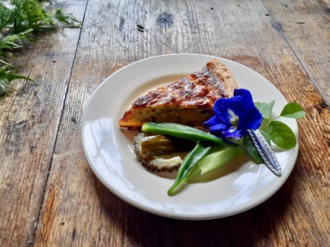 本日のケーキはフクロク亭謹製洋梨のアーモンドケーキ