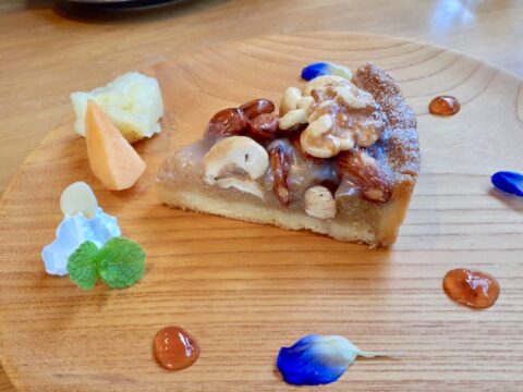 本日のケーキはフクロク亭謹製洋梨のアーモンドケーキ