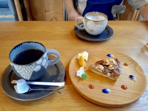 可愛い内装で珈琲とキャラメルナッツタルトを頂きました