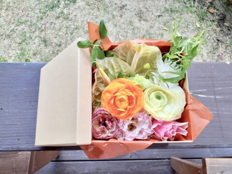 花いちりんでは生花の他に、お好みのお菓子、ドライフラワー、アクセサリー、フラワーベースをBoxやバスケットに詰めて色々な組み合わせができます。