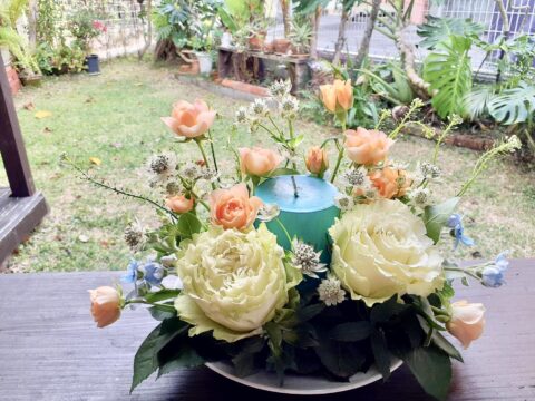 Nさんは初めてのキャンドルアレンジ。初めてとは思えない出来栄え