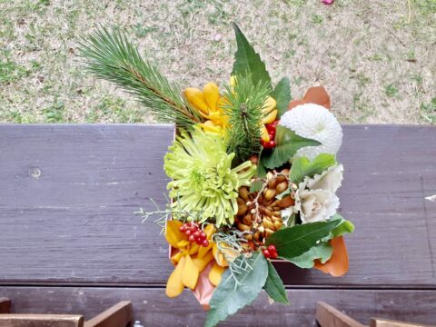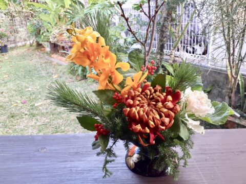 生花のお正月アレンジでお正月を迎えましょう。しめ縄を使ったオリジナルお正月飾りなども製作