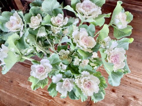 スプレー葉牡丹。大きさが色々でとてもアレンジしやすいよ
