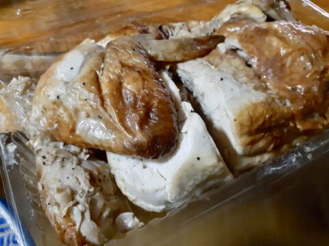 ビックワン美里店お隣のチキン屋さんでローストチキンと店の残りのお野菜(笑)チキンこちらでは初めて買ったけど美味しかったわ〜