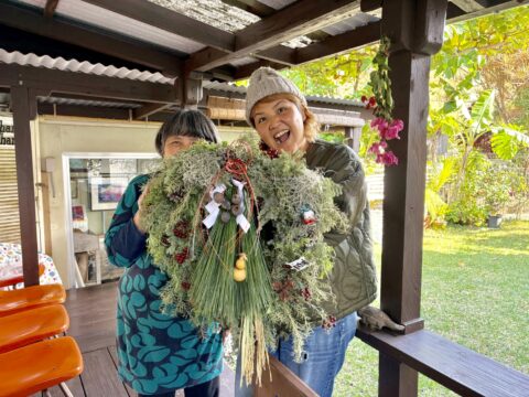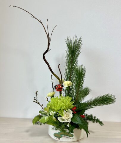 生花のお正月アレンジでお正月を迎えましょう。しめ縄を使ったオリジナルお正月飾りなども製作