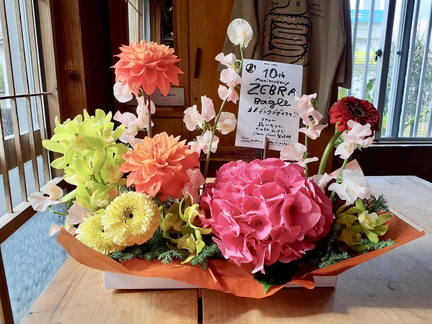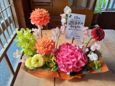 ゼブラベーグルさんへお届けした10周年祝いのアレンジメント