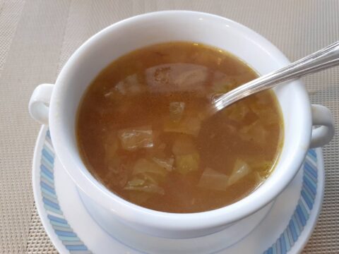 ランチは最近見つけた名護の名店へ。まず押麦の入った野菜スープ。美味いよ〜