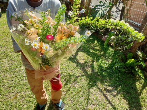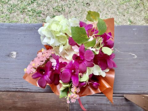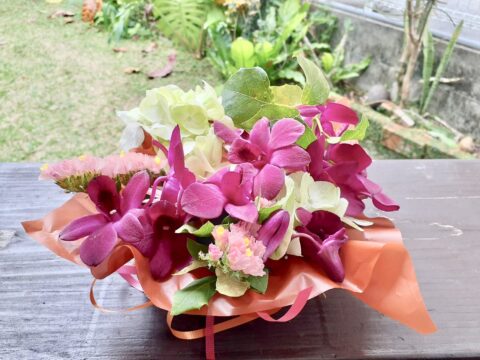 大きな花束から小さな花束、花かんむり、花の首飾り、コサージュなどなどご希望に合わせてご用意いたします