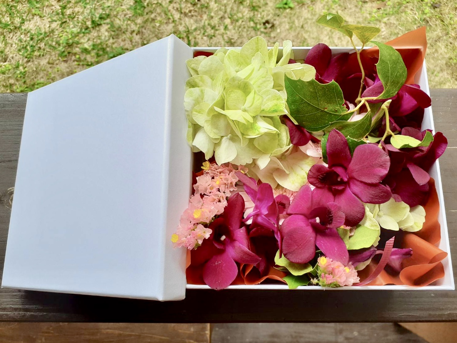 犬さんへお届けしたお悔やみBoxアレンジメント