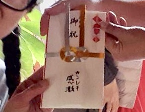 パーリー予定時刻30分前に中村洋装たくやさんがお祝儀を渡しに来たが本人そこに居て、デージな目配せで大慌てしたが、本人全然気づかず(笑)