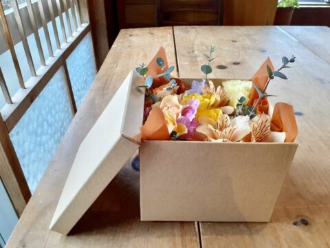 犬さんへお届けしたお悔やみBoxアレンジメント