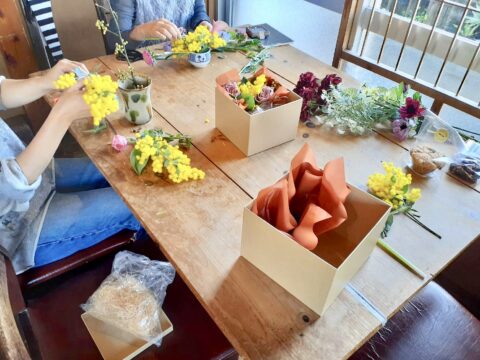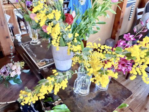 昨日のお花教室は綺麗なミモザも入荷して皆んな大盛り上がり♪賑やかしいな朝でした