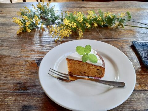 県産にんじんをたっぷり使ったキャロットケーキにチーズフロスティングをのせて。県産にんじんの季節になりましたね〜