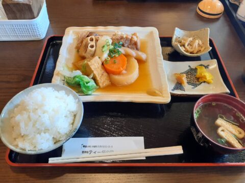 ランチは名護のティーダの森で煮付け定食。今日は三枚肉が小さかったな〜(笑)でも旨し