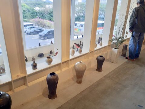 恩納村ムーンビーチシーサイドギャラリーで開催してる「三者3陶穴窯という場所(ポトス)から」へ行って来た