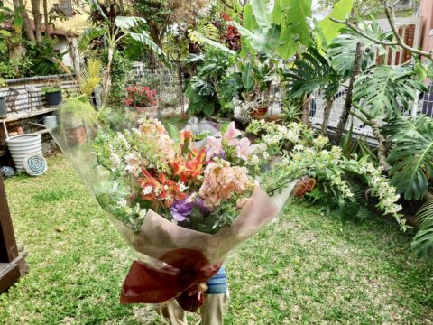 大きな花束から小さな花束、花かんむり、花の首飾り、コサージュなどなどご希望に合わせてご用意いたします
