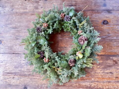 リースやツリー仕立てアレンジ、器アレンジ などお好きなタイプのアレンジメントを製作します。