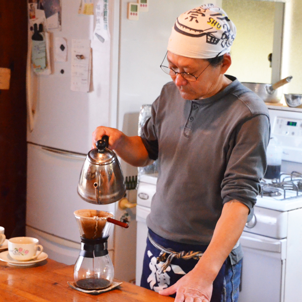 Our coffee is made from dark roasted, home-roasted beans that are ground and carefully brewed one cup at a time.
